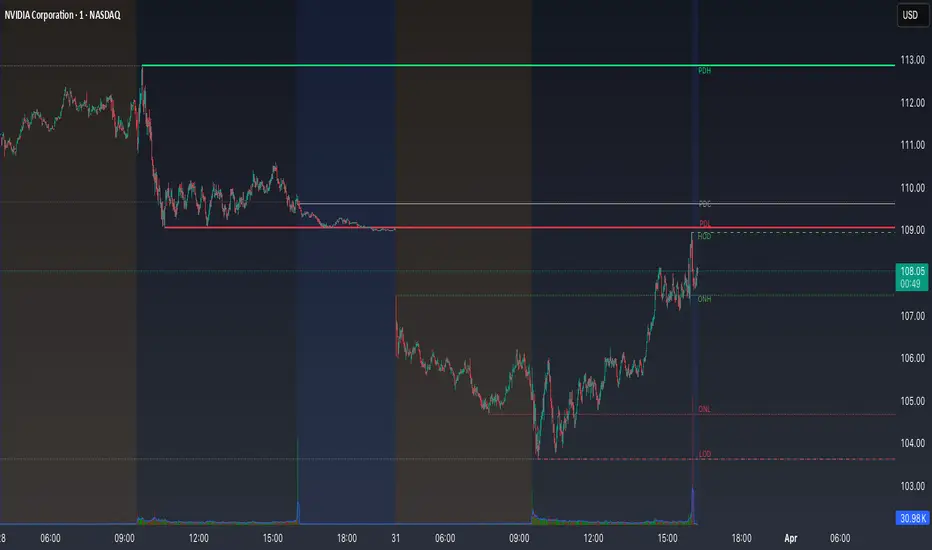 - Previous day high (PDH), low (PDL), and close (PDC)