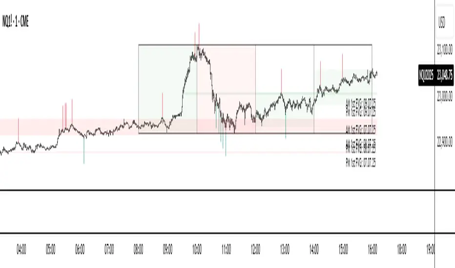 The Noon Curve Box with Quadrants & 1st FVG is a comprehensive analysis tool built for intraday traders. It automates the process of identifying and visualizing key time-based concepts popularized by ICT (Inner Circle Trader) and other price action methodologies.