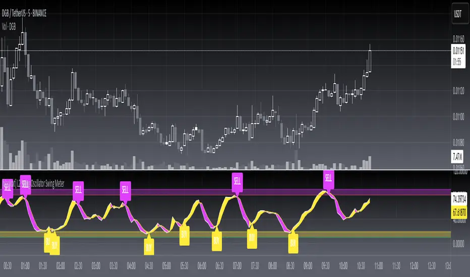 OVERVIEWThe "[blackcat] L2 Swing Oscillator Swing Meter" is a technical analysis tool designed to identify overbought/oversold market conditions through price-volume relationship calculations. It provides visual swing line signals and trading alerts based on adaptive thresholds.