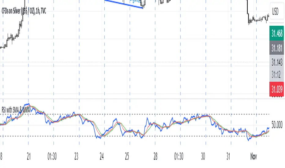 This script is a custom RSI indicator with added SMA and WMA moving averages to smooth RSI trends and improve analysis of momentum shifts.