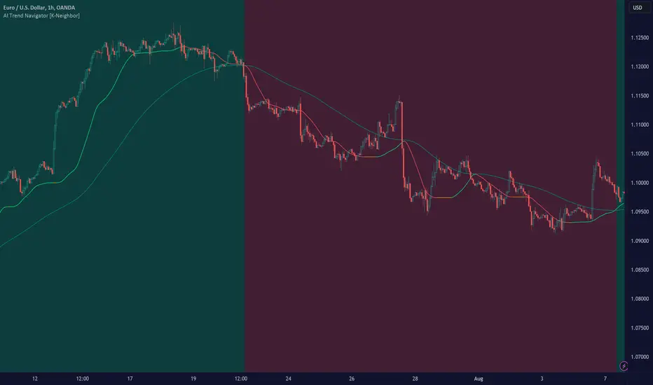 In the evolving landscape of trading and investment, the demand for sophisticated and reliable tools is ever-growing. The AI Trend Navigator [K-Neighbor] is an indicator designed to meet this demand, providing valuable insights into market trends and potential future price movements. The AI Trend Navigator [K-Neighbor] indicator is designed to predict market trends using the k-Nearest Neighbors (KNN) classifier.