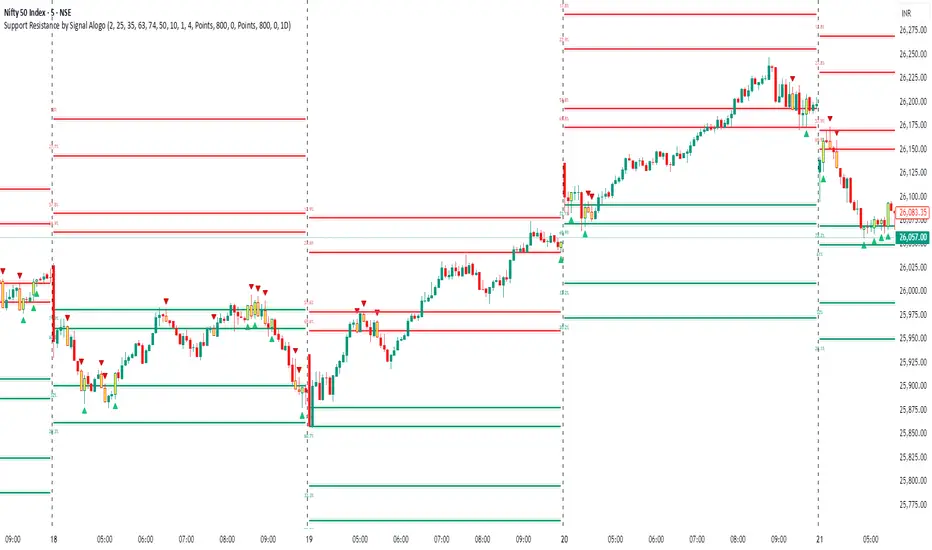 For symbols that move around round numbers or strike intervals, the script can draw strike-based S/R lines (like 50 or 100 points) You can choose solid or dotted lines and select how many zones to show.