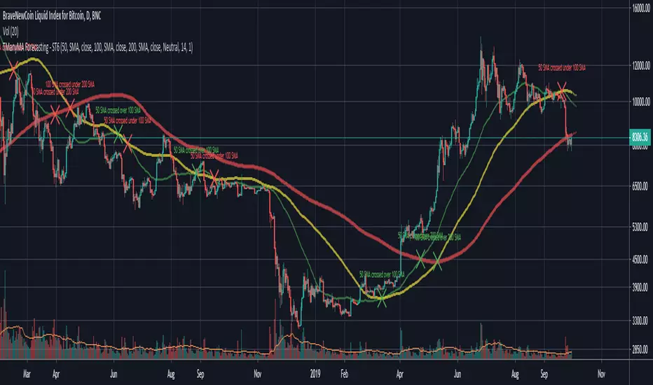 - Crossovers are plotted on the chart with detailed information regarding the crossover (Ex: 50 SMA crossed over 200 SMA )
