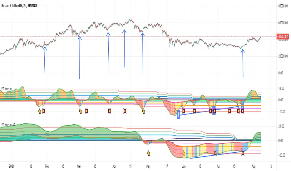 The configuration of EP Keeper helps us to reflect the faster movements of the price. They will help us fine-tune the input to the maximum. Keeper LT shows us the medium-term trend and EP Keeper XLT gives us a vision of the very long-term trend. Trading with all three settings in sight we get a very quick view of how the price is moving.