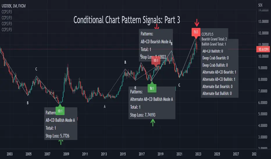 • Because compiled script code limit is 65000, the indicator is separated into different parts. Each part contains different patterns and could be considered as an independent detector.