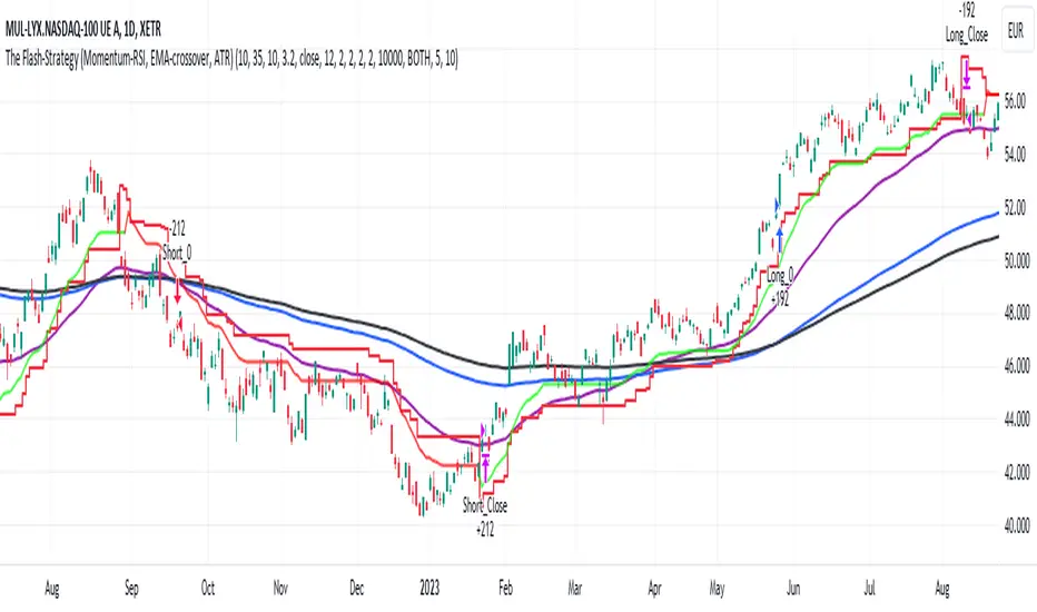 The Flash-Strategy (Momentum-RSI, EMA-crossover, ATR) with Minervini Stage Analysis Qualifier