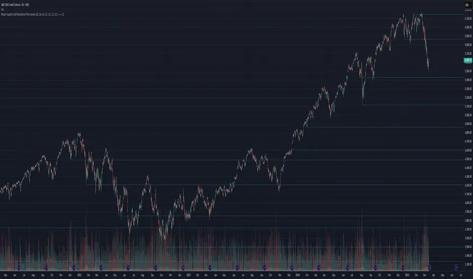 Understanding how this script works:The Support and Resistance points are found using high volume areas of interest and narrowing that down to peaks and troughs. This give you S/R points that may not be at the exact highs and lows, but can be considered highly important levels thus my use of "Major" Support and Resistance Price Levels.