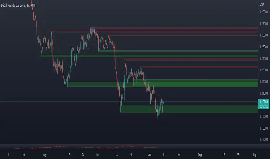 This indicator will automatically plot support and resistance levels and will also allow you to overlay multi time frame support and resistance on any time frame that you are currently conducting analysis on. In addition you can also set alerts when a support and resistance level is tested, fine tune how many levels you would like to view on your charts, option to input how many candlesticks minimum you would like between support and resistance levels. You can also select breakout mode which will turn old support into resistance by a colour change and turn old resistance into support. NEW you can now use extended levels and change your zones into lines.