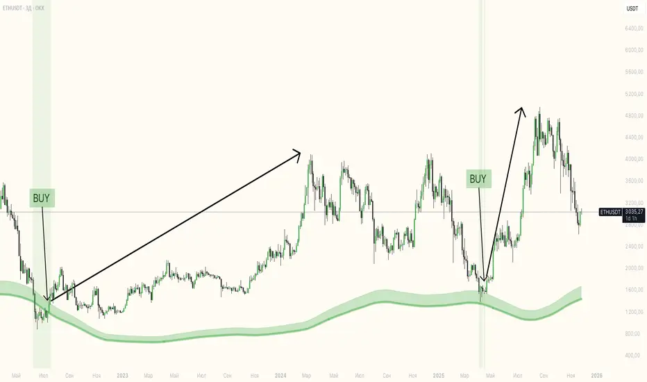 Since the indicator is used on higher timeframes, the price rarely reaches the indicator line, but it often shows a strong reaction when it does, which suggests that the indicator can be used for investment purposes.