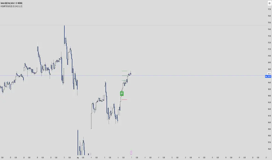 AI QUANT OCULUS integrates four distinct technical concepts—exponential trend filtering, adaptive smoothing, momentum oscillation, and Gaussian smoothing—into a single, cohesive system that delivers clear, objective buy and sell signals along with automatically plotted stop-loss and three profit-target levels. This mash-up goes beyond a simple EMA crossover or standalone TRIX oscillator by requiring confluence across trend, adaptive moving averages, momentum direction, and smoothed price action, reducing false triggers and focusing on high‐probability turning points.