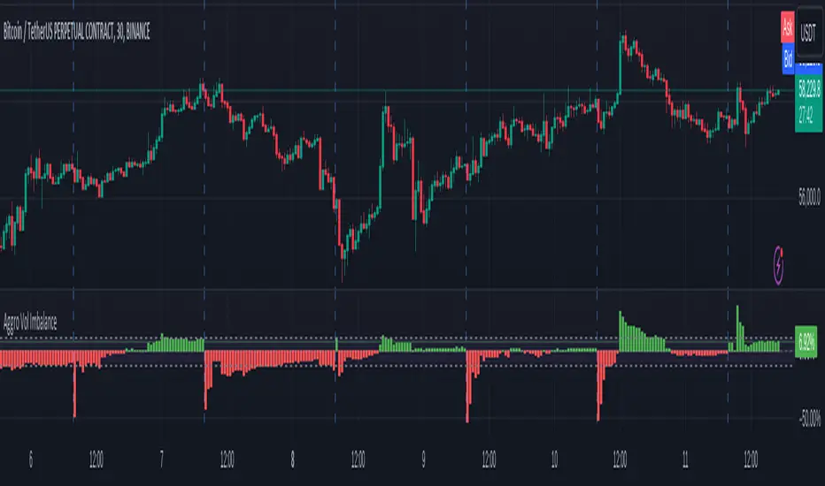 Aggressive Volume Imbalance uses lower timeframe historical data to calculate Historical Aggressor Volume Imbalances, while live data is used for live aggressor volume imbalances.