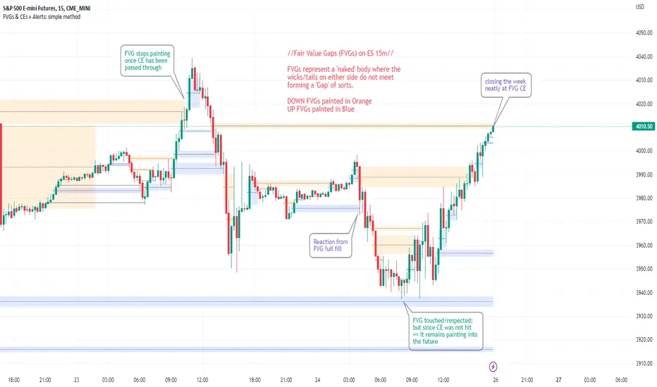Updated FVGs & CEs + Alerts: simple & efficient method