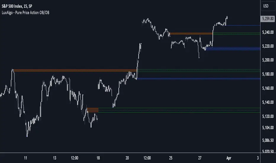 Updated Pure Price Action Order & Breaker Blocks [LuxAlgo]