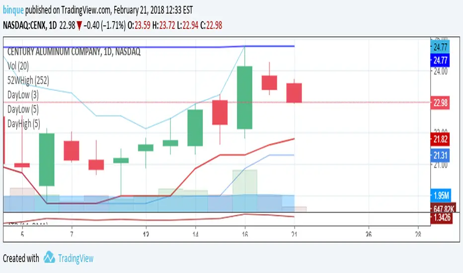 Plot the Moving Average of the Daily High for short periods of time (i.e 3 day or 5 day). Great for detecting when a stocks SELL pressure is running out and time to switch to a BUY strategy. Use in the DayHIGH indicator for nice price channels on a chart.