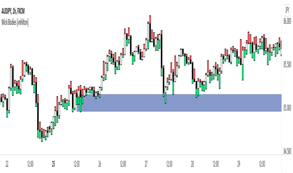 I noticed that changing the colour of the wicks through TradingView settings changes the colours of both the top and bottom wicks. I also noticed that the thickness of wicks couldn't be changed either so they remained very hard to see when zoomed out of charts. Wicks have the potential to show zones where price rejects from - this is useful for identifying potential support and resistance zones.