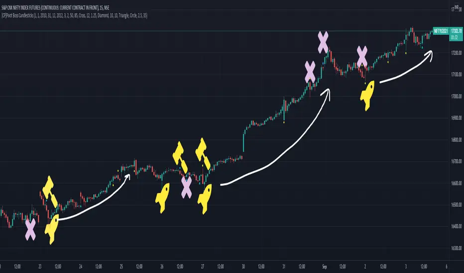 If you are not able to see the mid points marked on the signal candles, then please change the visual order of this indicator and 'Bring to Front'. Google how to do this in TradingView, if you don't know.