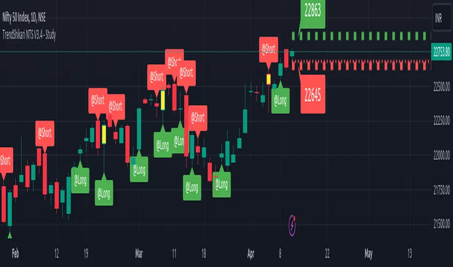 2. Next day levels used to come from strategy file earlier. These levels will now come from the Study file. This means less clutter on chart with one less file to load while trading with TrendShikari NTS. Only study file is needed most of the time. Use the strategy file only when you want to backtest on Nifty with TrendShikari NTS.
