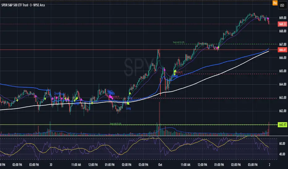 Automatically plots Clean stop-loss and take profit levels. Built for SPY 0DTE-5DTE options, but works on other liquid tickers.