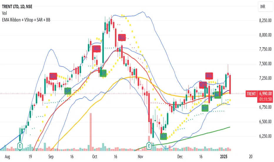Aura Vibes EMA Ribbon + VStop + SAR + Bollinger Bands