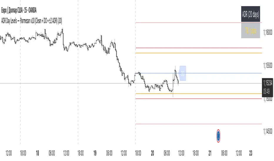 ADR Day Levels — Parmezan v10 is an intraday volatility-awareness tool that shows how far price has moved relative to its typical daily range.