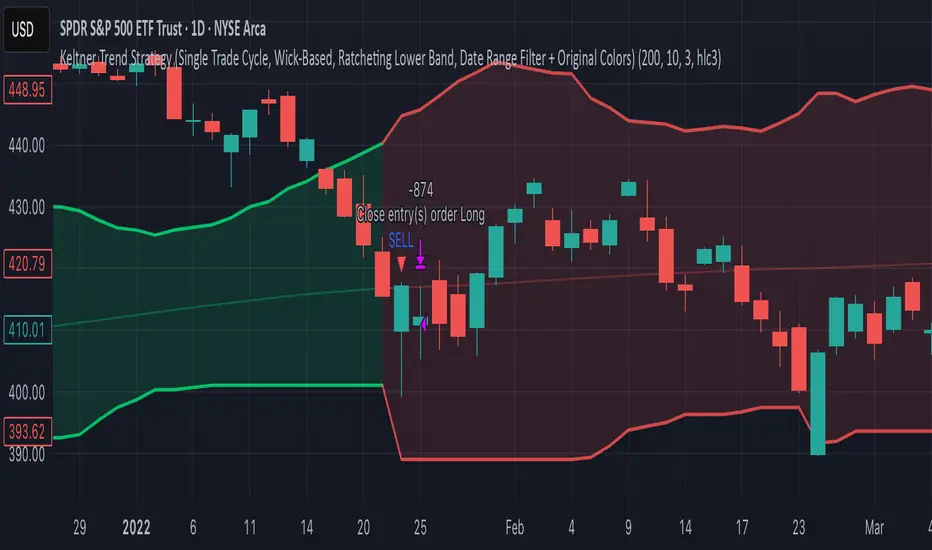 Keltner Trend Strategy with Backtesting and ratching stop loss