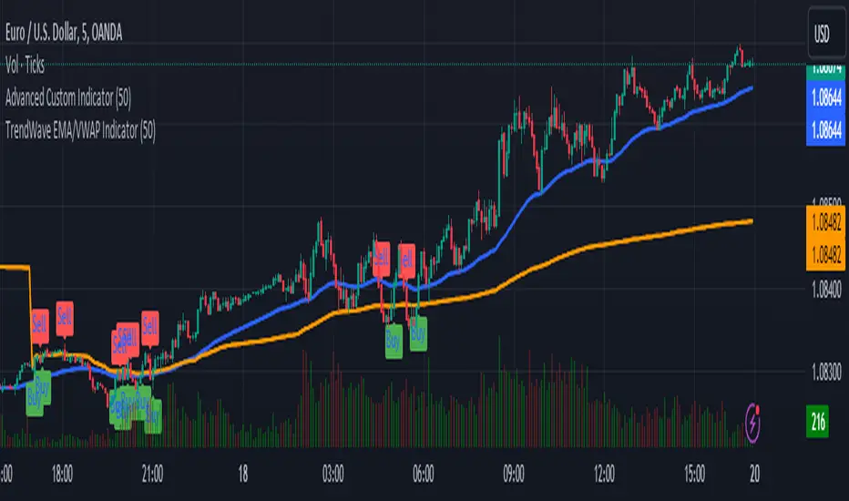 The TrendWave EMA/VWAP Indicator is a powerful technical analysis tool designed for traders seeking to enhance their market strategies. By combining the dynamic Exponential Moving Average (EMA) and the Volume Weighted Average Price (VWAP), this indicator provides valuable insights into price trends and potential trading signals, allowing for informed decision-making in various market conditions.