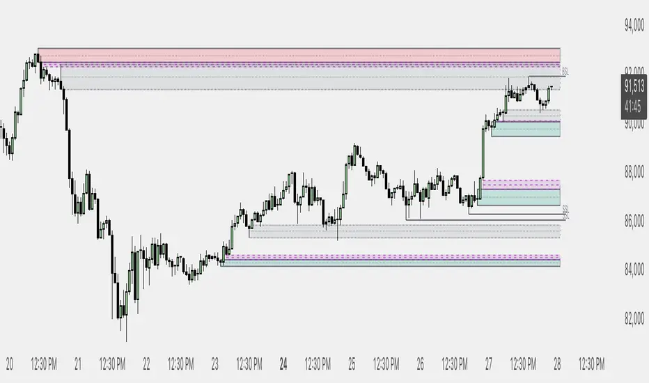 It combines Market Structure, Displacement (FVG), and Liquidity Sweeps into a single, clean overlay, allowing you to focus on execution rather than analysis.