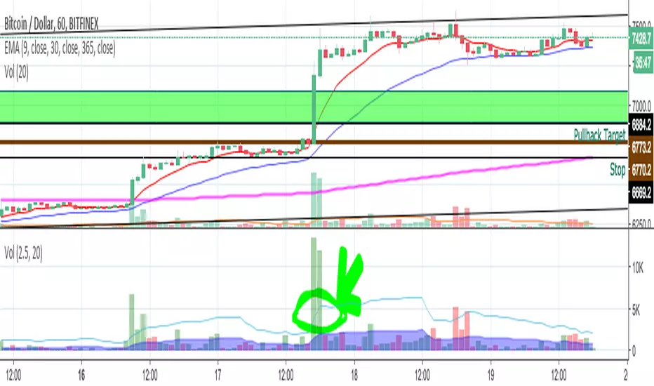The purpose is creating a threshold which we'll use to put an alert on. This way, we can be notified whether Volume pumps.