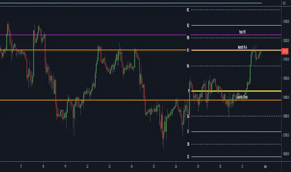 Yearly Pivots shown on 1m - Daily timeframes