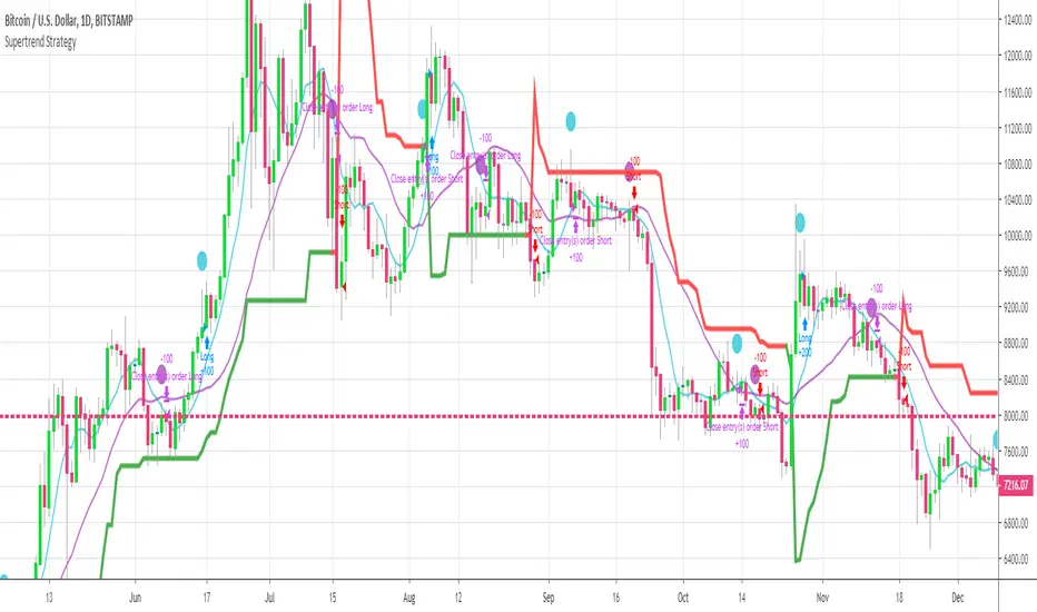 - Entries on Supertrend MTF breakout + moving average cross. Entering whenever there is a convergence