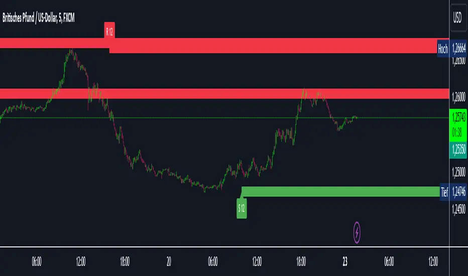 Pivot Detection: The script identifies swing highs and lows from the higher timeframe (timeframeSR).