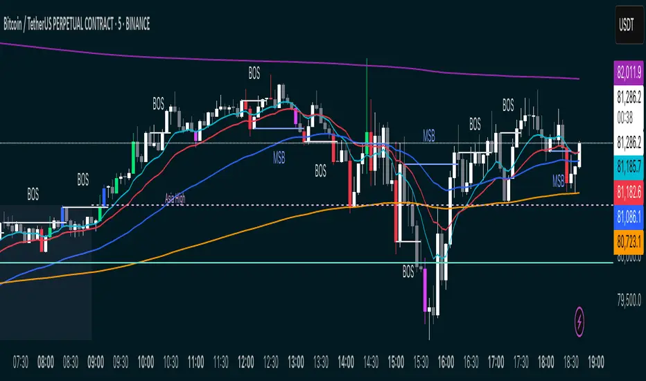 MSB (Market Structure Break): Shows when price flips and breaks the previous high/low — possible start of a new trend.