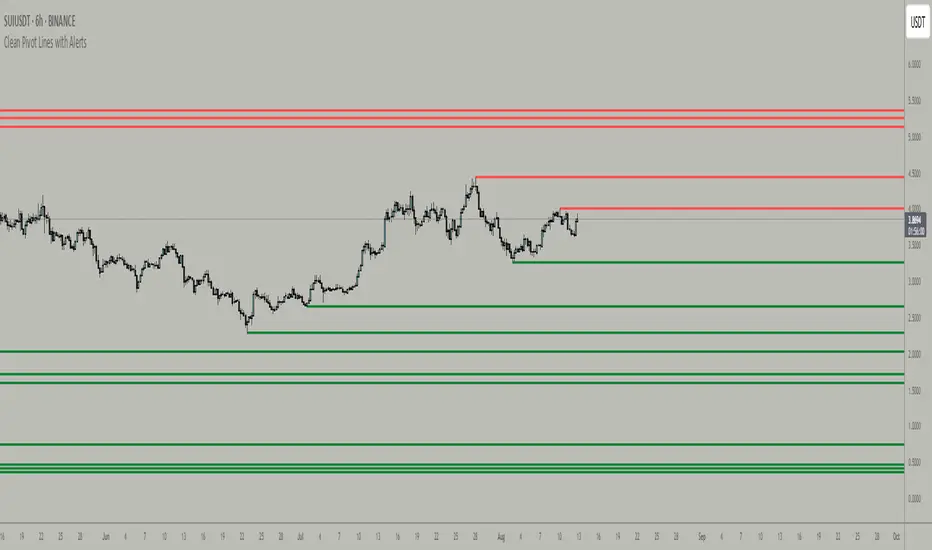 []Auto-Cleanup: historical lines expire automatically after their set duration; old pivot levels still cleaned periodically. - Core Logic Preserved: original pivot detection and alert conditions remain unchanged; optional higher-timeframe pivots via “Pivot Timeframe”.