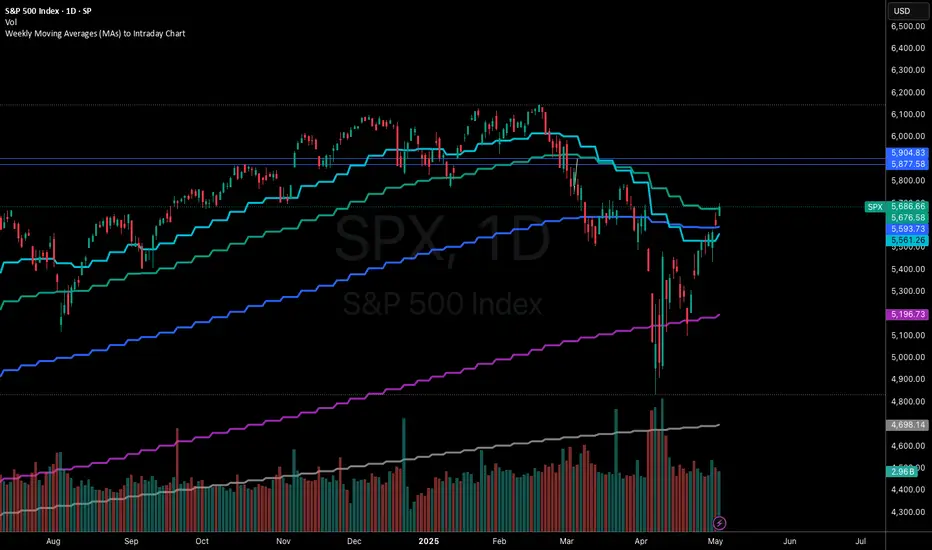 This indicator overlays key weekly timeframe moving averages onto your intraday chart, allowing you to visualize important long-term support and resistance levels while trading shorter timeframes. The indicator includes: