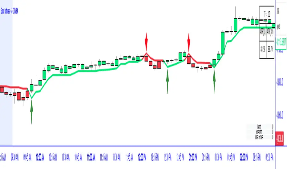 This indicator is an enhanced, multi-timeframe version of the original “ATR ratio” by RafaelZioni. Huge thanks to RafaelZioni for the core concept and base logic. The script still combines an ATR-based ratio (Z-score style reading of where price sits within its recent ATR envelope) with an ATR Supertrend, but expands it into a more flexible trade-decision and visual context tool.