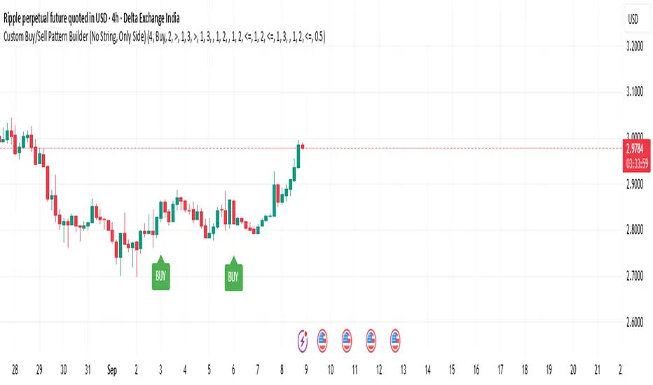 You’ll see clear “BUY” or “SELL” labels automatically show up on your chart whenever the exact rule YOU built matches current price action.