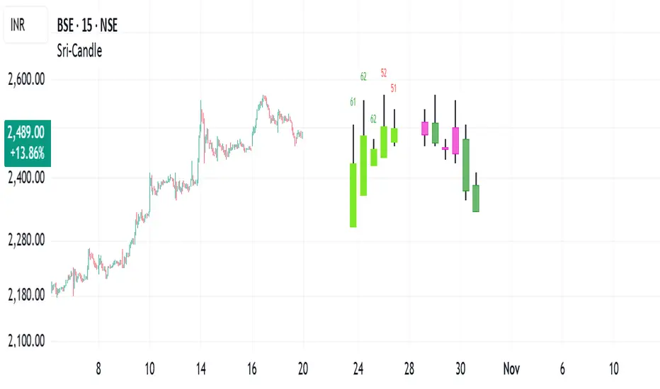 The Sri - Daily & Weekly Candle Strength indicator is designed to visually display recent daily and weekly candle activity directly on your chart, highlighting buyer and seller dominance for each candle. It helps traders quickly assess the strength of bullish vs bearish pressure over recent periods and can be used with both Normal and Heikin Ashi candles. This tool is particularly useful for swing traders, position traders, and technical analysts who want a clear view of candle momentum without switching timeframes.