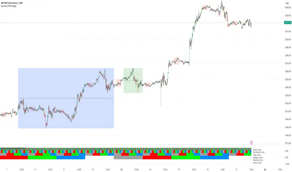 The Defining Range Indicator employs a sophisticated algorithm to analyze price action within the selected quarterly cycle. By examining the price behavior and patterns within this timeframe, the script determines the most significant high, low, and equilibrium levels that are likely to influence future price movements.