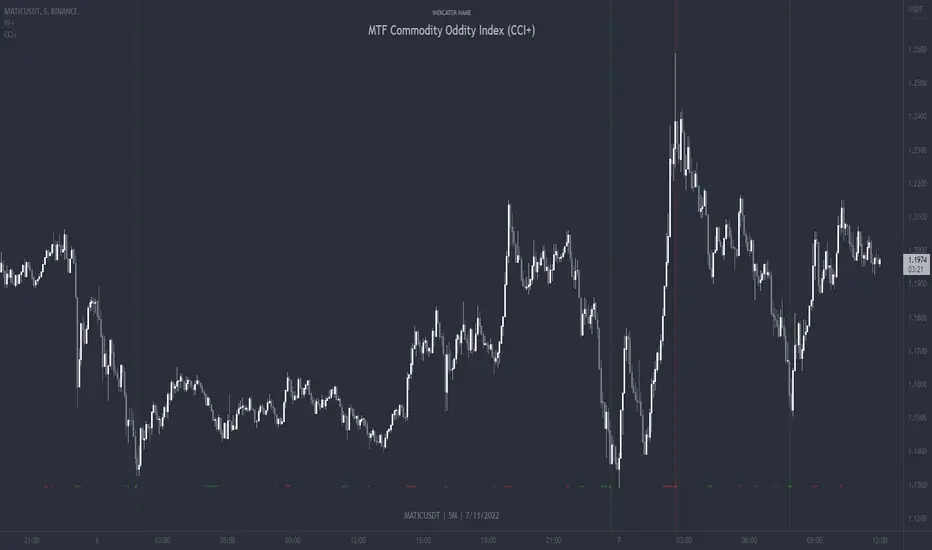 This chart overlay indicator is based upon the Commodity Channel Index (CCI) and can signal multiple triple-timeframe CCI overbought and oversold confluences directly onto your chart, intended for use as a confluence either for reversal trade entries, or potential trade exits, indicating where price may be probable to reverse.