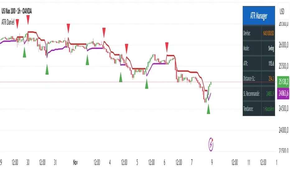**ATR Daniel** is an intelligent trailing stop indicator that automatically adapts to your trading style and the asset you're trading.