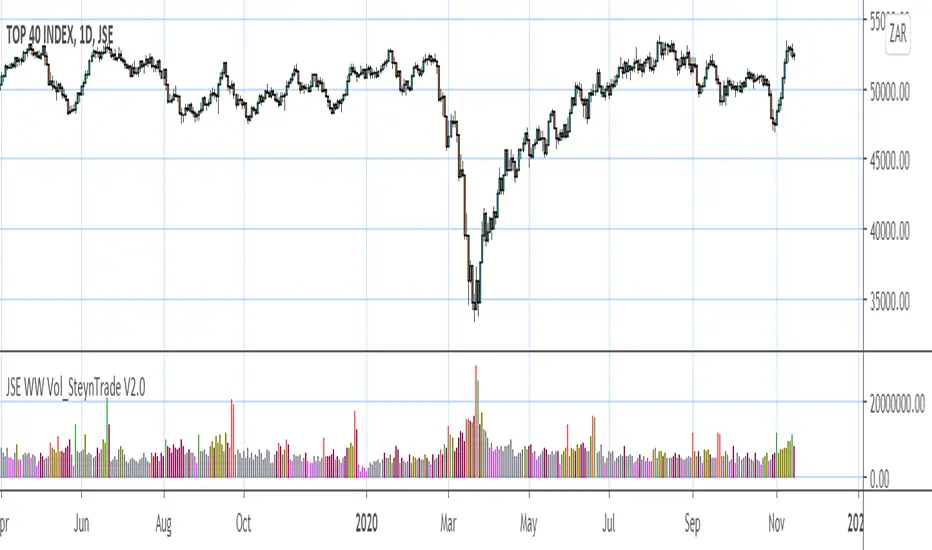 // The JSE Wyckoff Wave is in a separate code. This is the code for the volume of the wave. Please see code for the JSE Wyckoff Wave which goes with this indicator.