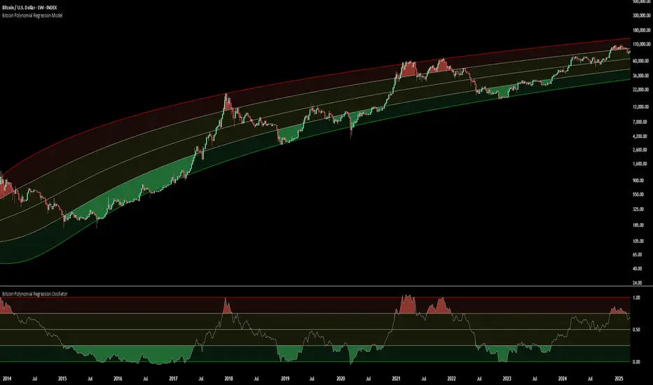 This model is based on two separate cubic polynomial regression lines. One for the top price trend and another for the bottom. Both follow the general cubic polynomial function: