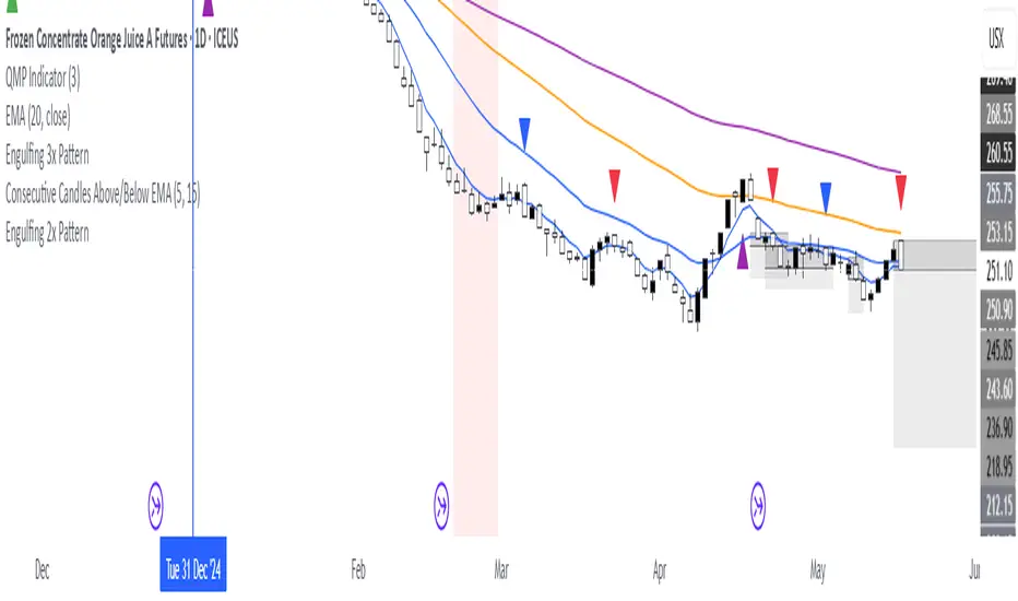 This indicator identifies and highlights periods where the price remains consistently above or below an Exponential Moving Average (EMA) for a user-defined number of consecutive candles. It visually marks these sustained trends with background colors and labels, helping traders spot strong bullish or bearish market conditions. Ideal for trend-following strategies or identifying potential trend exhaustion points, this tool provides clear visual cues for price behavior relative to the EMA.