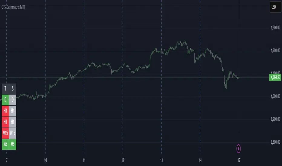 Whether you trade intraday or swing, the CTS Dashmatrix gives instant clarity on market bias at a glance. It is best used with price action, smart money concepts, or trend-following strategies.
