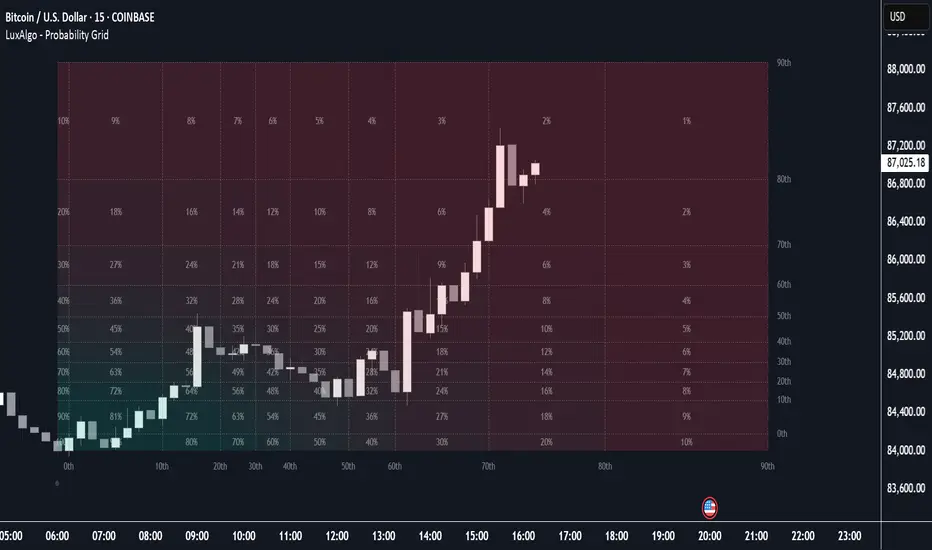 The Probability Grid tool allows traders to see the probability of where and when the next reversal would occur, it displays a 10x10 grid and/or dashboard with the probability of the next reversal occurring beyond each cell or within each cell.