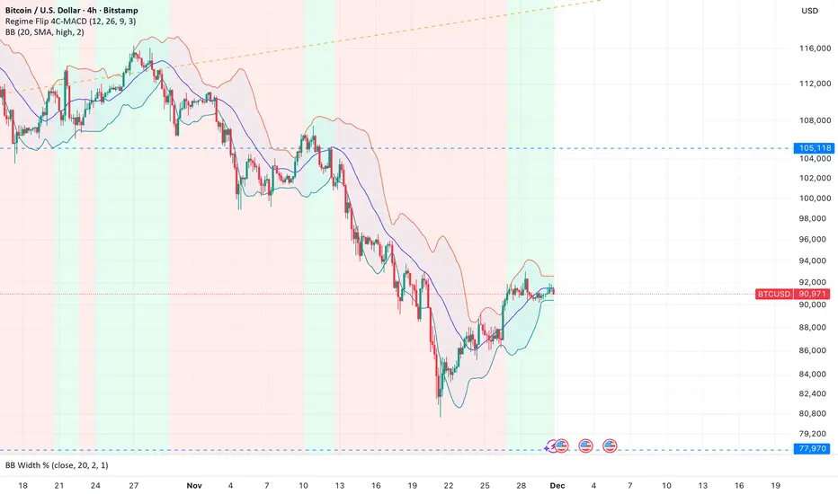 In other words, it turns the MACD’s usual “above/below zero” behavior into a clean, slower-changing on/off regime switch. Instead of giving you constant signals, it focuses on the moments where momentum truly shifts and sticks around for a few bars, helping you avoid getting faked out by single-bar noise. The alerts are wired to those flip moments, so you can get notified when the market transitions from bearish to bullish (or vice versa) according to this MACD-based regime logic.