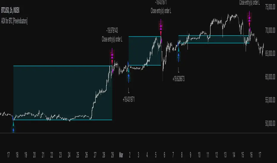 The ADX Strategy for BTC is a trend-following system that uses the Average Directional Index (ADX) to determine market strength and momentum shifts. Designed for Bitcoin trading, this strategy applies a customizable ADX threshold to confirm trend signals and optionally filters entries using a Simple Moving Average (SMA). The system features automated entry and exit conditions, dynamic trade visualization, and built-in trade tracking for historical performance analysis.