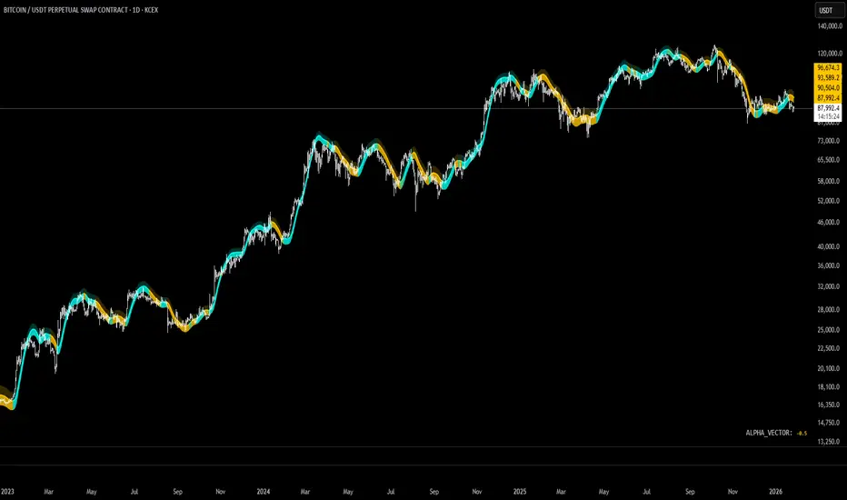 The Institutional Alpha Vector (IAV) is an original trend-following framework that replaces single-indicator bias with a Weighted Composite Score. Instead of relying on a simple moving average, this script aggregates four distinct quantitative dimensions—Price, Momentum, Volatility, and Volume—into a normalized value called the "Alpha Vector."