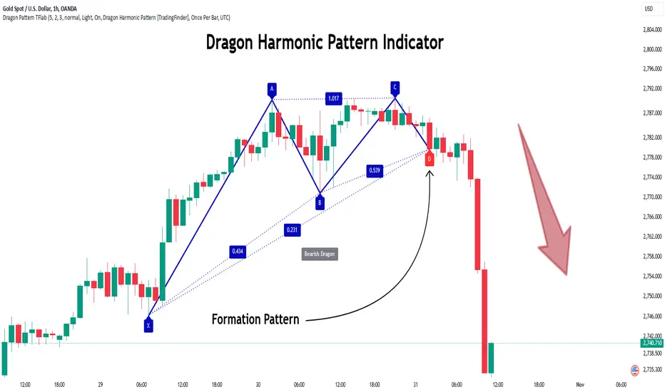 By combining the Dragon Harmonic Pattern indicator with precise Fibonacci ratio analysis, traders can identify key opportunities while minimizing risks and improving their decision-making in both bullish and bearish market conditions.