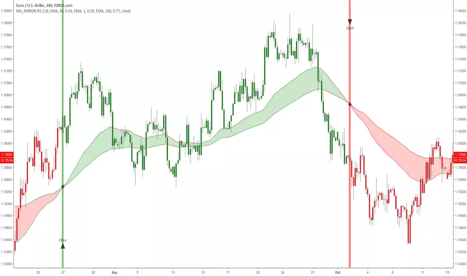 R5.2 Release:- Added optional to show and alert MA Ribbon Cross Overs. Buy signal on first Bullish candle and Sell on first Bearish candle.